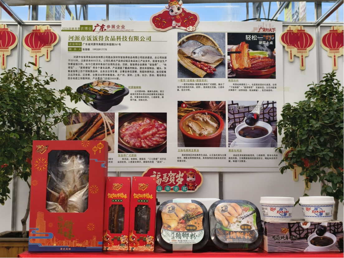 2月6-9日,第十六届吉林冬季农博会在长春农博园火热举行,来自广东的年菜企业组团北上,梅州陈小鸽、顺德品珍、河源饭饭得、国联水产、恒兴食品等知名品牌携红烧乳鸽、腊肠、盆菜、金鲳鱼、酸菜鱼、虾滑等特色产品亮相,为吉林市民带来浓郁的岭南年味,也开启了粤吉两地年菜产业合作的新篇章。