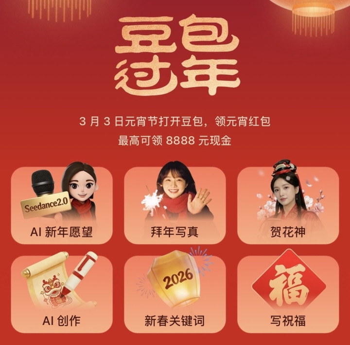 如果说极速迭代是“内功”,那么春节活动就是“外象”。2026年春节,各大AI平台投入超15亿元,将传统的红包大战升级为“AI+场景”的生态争夺战,让抢红包成为用户探索AI功能的最佳入口。