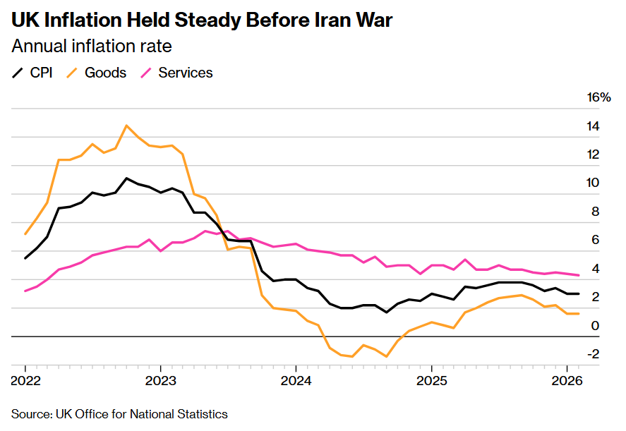 如上图所示的那样,英国CPI通胀趋势在伊朗战争前维持稳定,基准为年度通胀率。